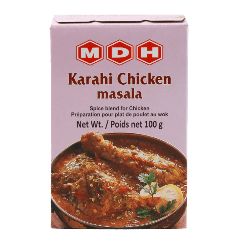 The MDH Karahi Chicken Masala blend has the right balance of spices to give dishes the authentic taste of a specialty from North India and Pakistan. The chicken is usually prepared with bell peppers and served with a thick sauce that goes well with naan, roasts or rice.